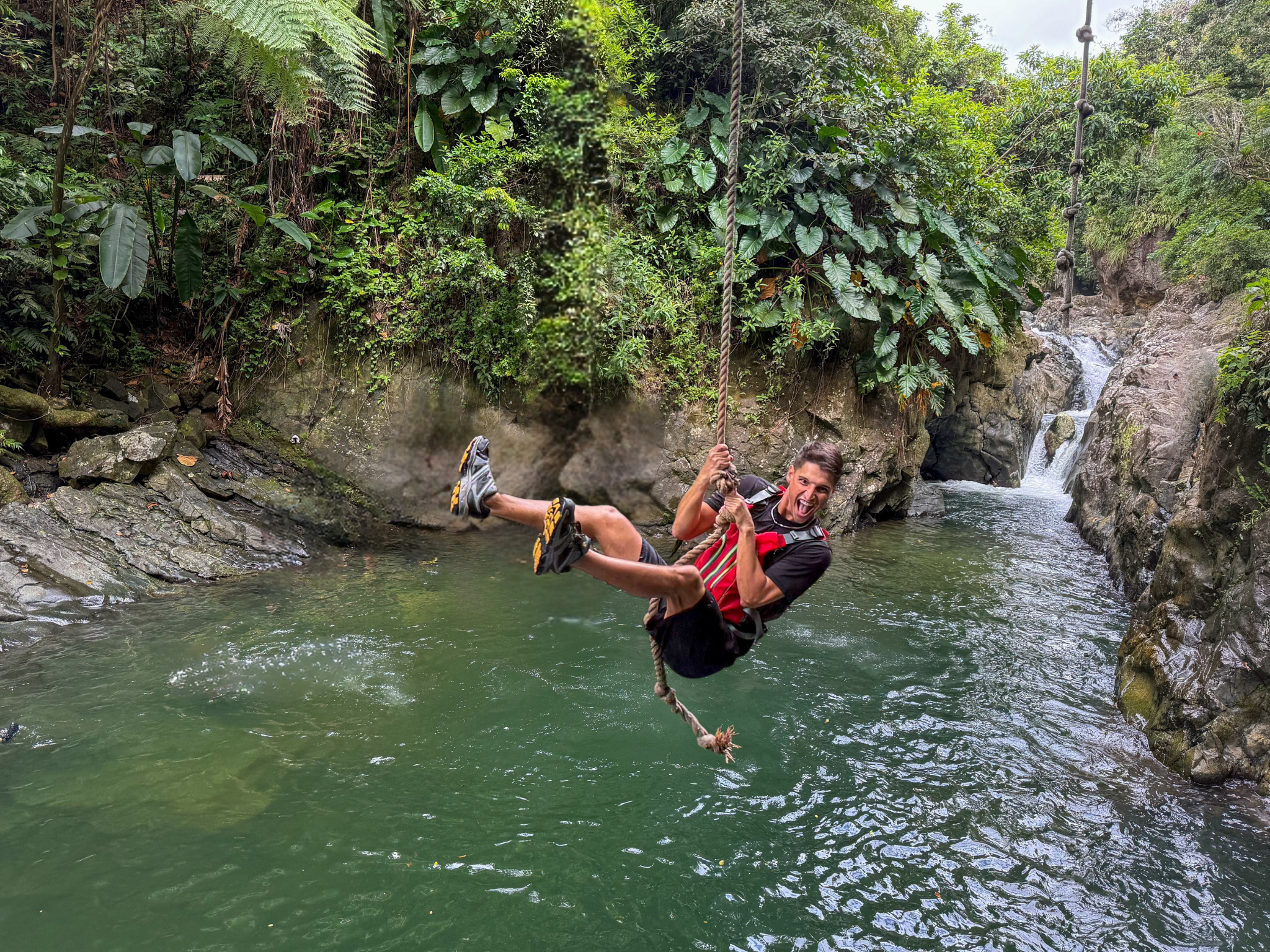 Upon arrival, our certified tour guide will lead you through this amazing secret spot of "El Yunque". In this area you will explore through the mud trails and lush green of the rainforest. The hike will take approximately 1.5 miles in total and will take approximately twenty minutes to reach the first bathing area and another fifteen minutes hiking on rocks to get to the water slide. We’ll spend around 2 hours inside the rainforest where we’ll be swimming, swinging from the rope like Tarzan, sliding down a natural waterslide, cooling off under the waterfall and jumping from different cliffs.