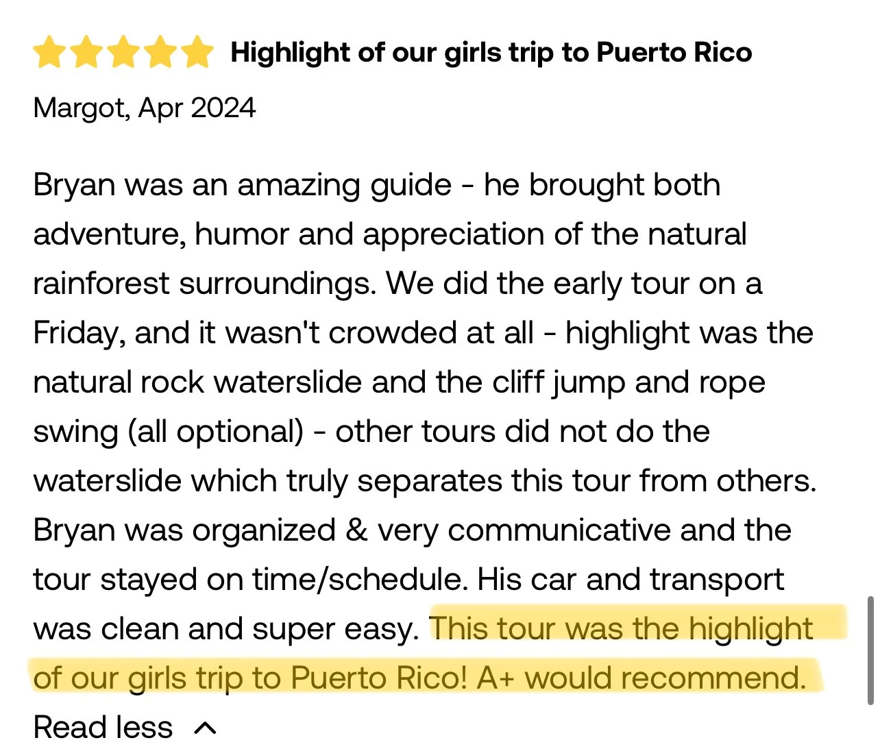 Before your pick up, please be sure to put on your bathing suit, sneakers with good grip and bring your towel and an extra set of clothes with you to dry off and change after your tour. Note: No Yeezys slides, Crocs, sandals or water shoes allowed (too slippery for this hiking).